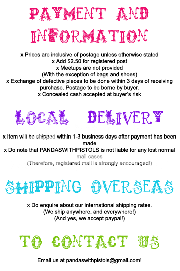 Wanna submit an order but the form doesn't work? Email us at pandaswithpistols@gmail.com!!