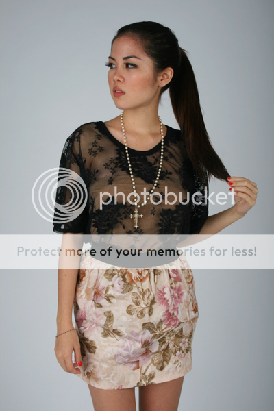 Vintage-inspired prints on the skirt, very nice floral pattern! Simple and sweet, pair with a plain top or the lace top that's seen here!